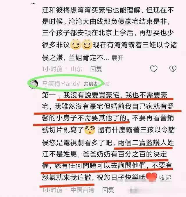 在评论区回复了这位网友,表示自己从来没有说过要买豪宅,也不需要豪宅,结婚之前有自己的小房子,也不需要其他的。